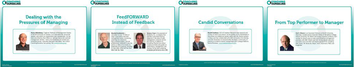 Coachingourselves學習模塊的作者為領先的管理和商業(yè)思想家和實踐者,其中不乏Henry Mintzberg、Edgar Schein、Marshall Goldsmith、Phillip Kotler、Dave Ulrich、Linda Hill、Nancy Adler、Ricardo Semler等大師,凝煉了最深刻最前沿的主題精髓。