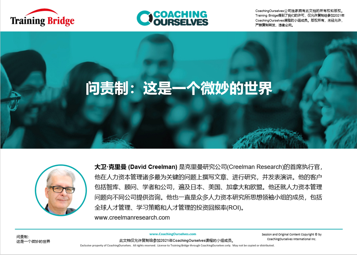 CoachingOurselves 團隊學習項目幫企業(yè)開展極高影響力的人才培養(yǎng)方案,建立可持續(xù)性的開放型和學習型社群與文化。