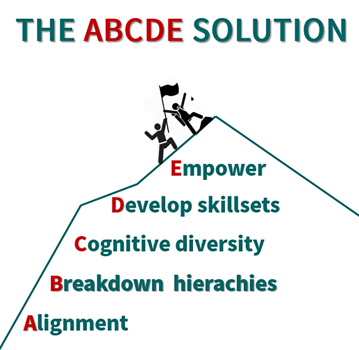 AXE 通過多次的經(jīng)歷并最終成功登頂,他總結(jié)出ABCDE 模型并把這個(gè)模型運(yùn)用到團(tuán)隊(duì)的建立中。